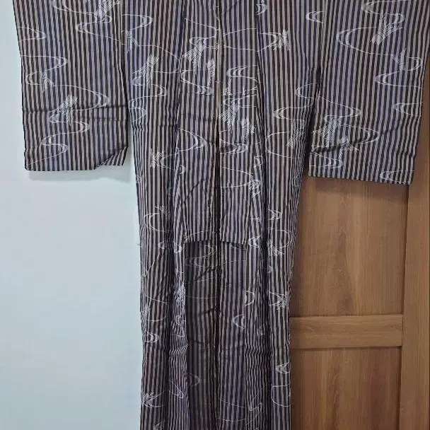 파랑과 그레이 스트라이프 코몬 기모노. - 색상: 스트라이프 패턴 (파랑, 그레이) - 스타일: 코몬 홑옷입니다. 치수를 측정하지 않아, 이 가격으로 판매합니다. 방문해 주셔서 감사합니다.