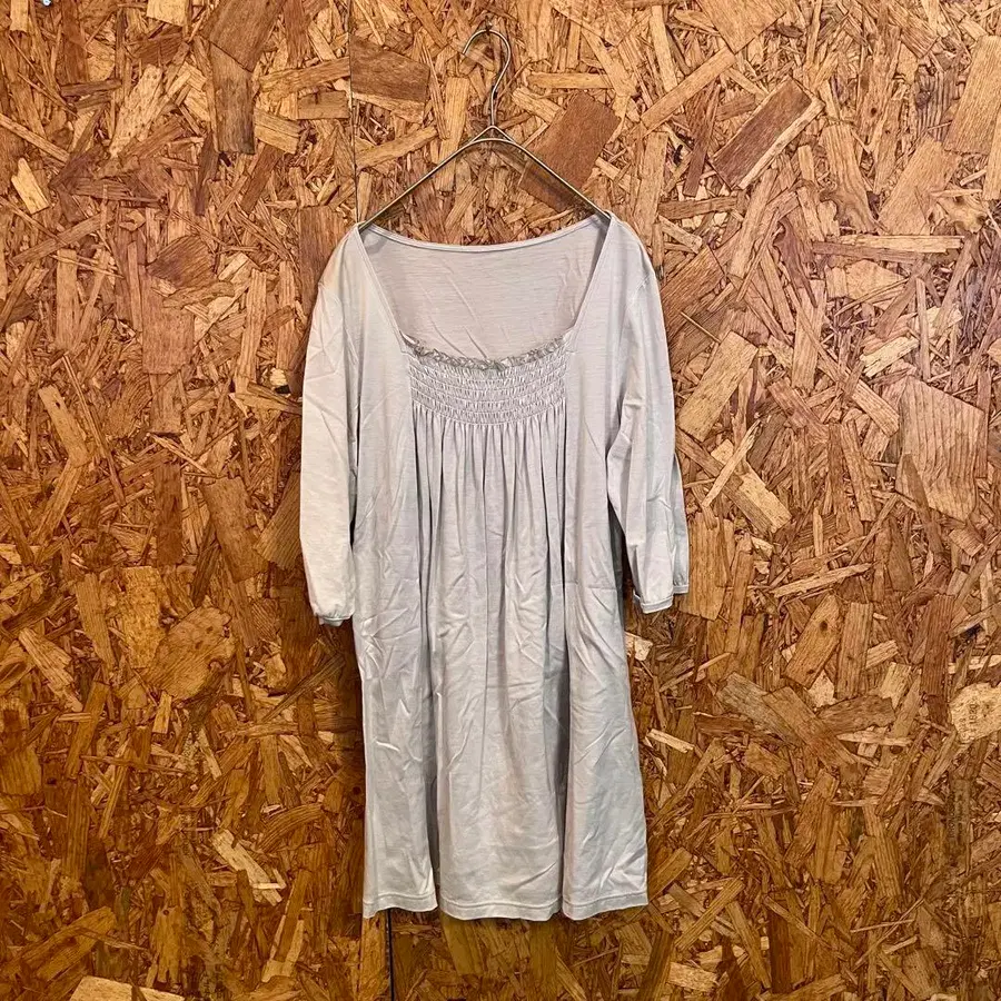 • Gauze 네이비 셔츠 롱 원피스 A라인 7부 소매