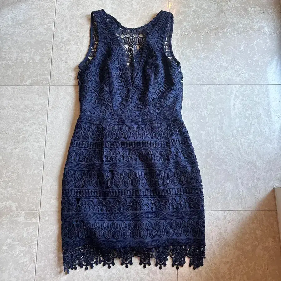 Forever New 새상품 네이비 레이스 슬리브리스 무릎 기장 원피스