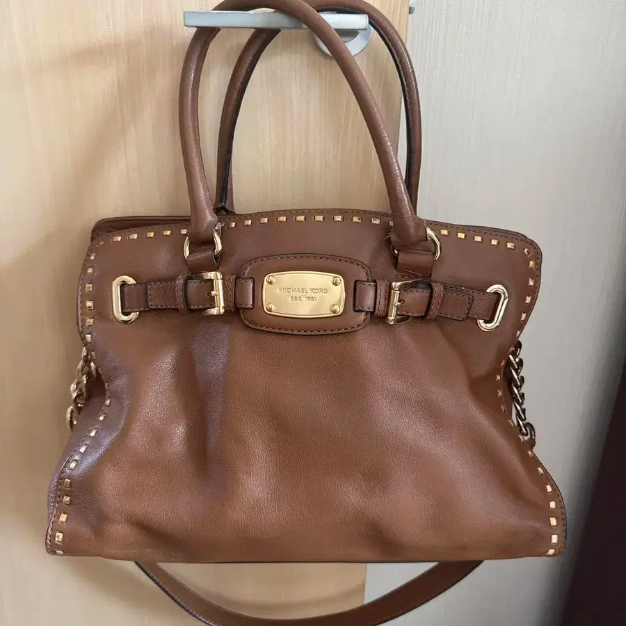 브라운 가죽에 골드 금장 장식이 돋보이는 핸드백입니다. - 브랜드: MICHAEL KORS - 색상: 브라운 - 소재: 가죽 - 장식: 골드 금장 장식 - 스타일: 핸드백 방문해 주셔서 감사합니다.