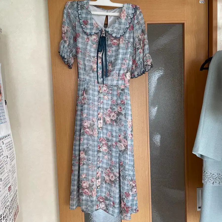 [ 새상품급 ] SZ 체크 무늬 꽃무늬 원피스 S