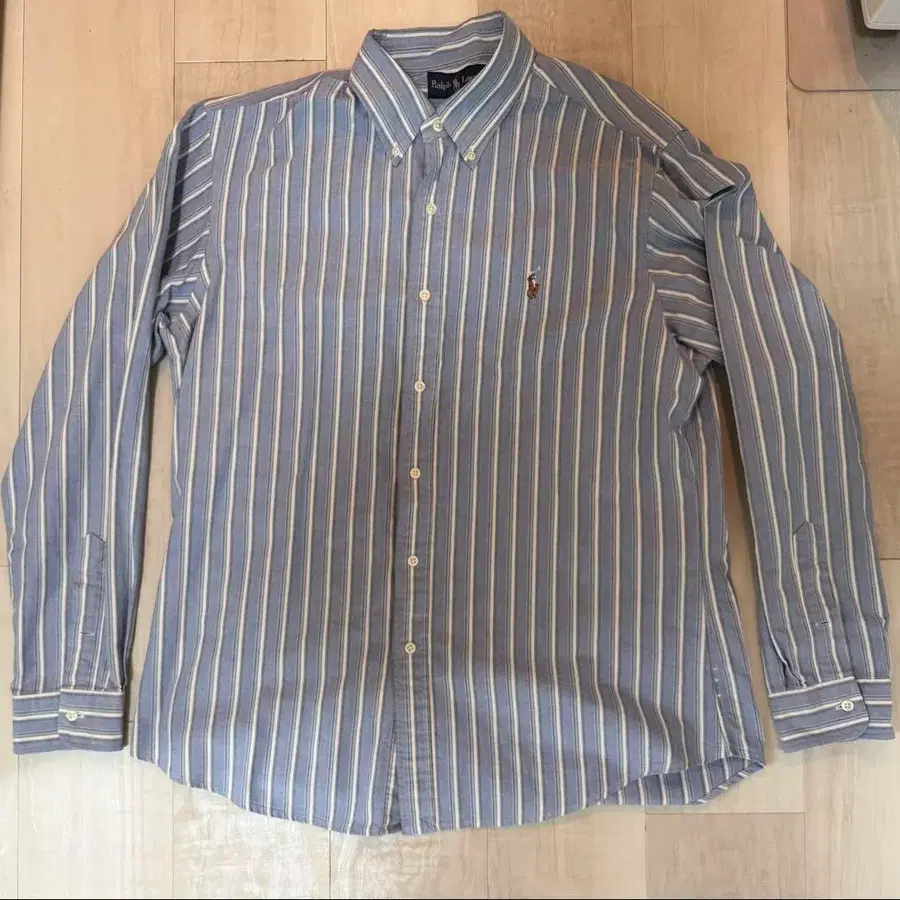 Ralph Lauren 블루 화이트 스트라이프 버튼 다운 긴팔 셔츠