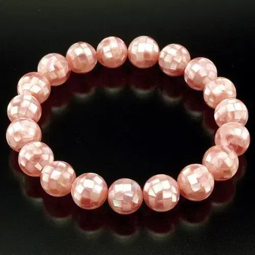 은은하고 부드러운 로즈 핑크색이 여성스러움을 돋보이게 하는 홍접패 (로즈 쉘)를 사용한 팔찌입니다.
