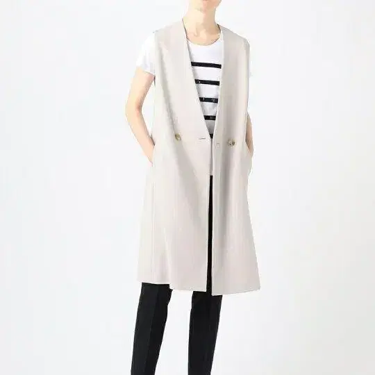 더블 브레스트 디자인과 깊은 V 네크라인이 샤프한 인상을 주지만, 적당히 허리를 강조한 실루엣으로 여성스러운 분위기를 더했습니다.