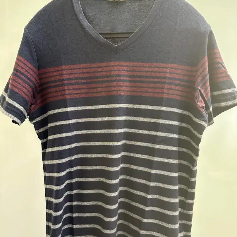 MACKINTOSH 네이비/빨간색 스트라이프 V넥 티셔츠 L 사이즈