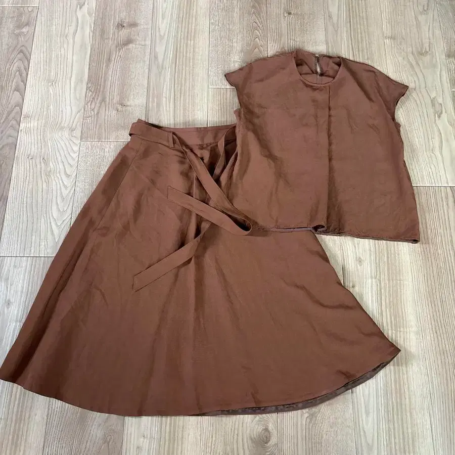 투모로우랜드에서 구매한 Ballsey의 셋업입니다. 매우 시원해서 지금부터 활용하실 수 있을 것 같습니다. 한 번도 착용하지 않고 옷장에 보관하고 있었습니다. 미사용이지만, 몇 년 동안 옷장에 보관되어 있으므로 예민하신 분은 삼가 주시기 바랍니다. 색상···브라운 계열 스커트 실루엣···플레어 상의 사이즈 36 스커트 사이즈 36 계절···봄/여름