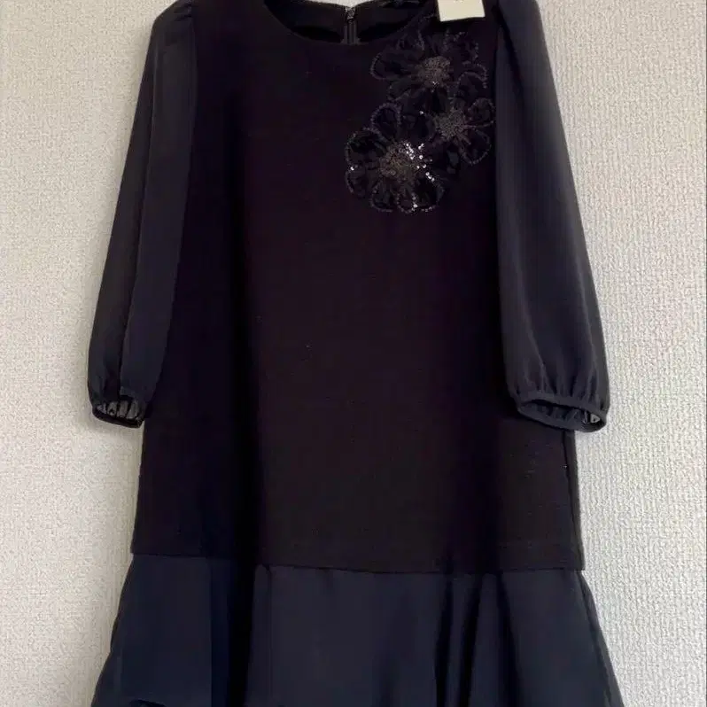 비즈 자수가 들어간 블랙 긴팔 튜닉, 프릴이 특징적인 디자인. 어깨 너비 36cm 가슴 너비 46.5cm 기장 72cm 소매 길이 43cm 소매 조젯 밑단 벌룬 - 색상: 블랙 - 디자인: 프릴 - 장식: 비즈 자수 방문해 주셔서 감사합니다.