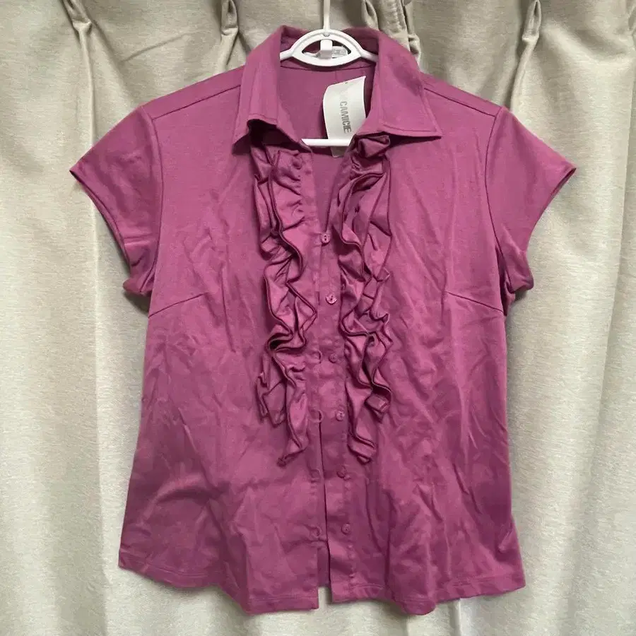 나라카미체 스키퍼 셔츠 반팔 컷소재 프릴 보라 퍼플 새상품