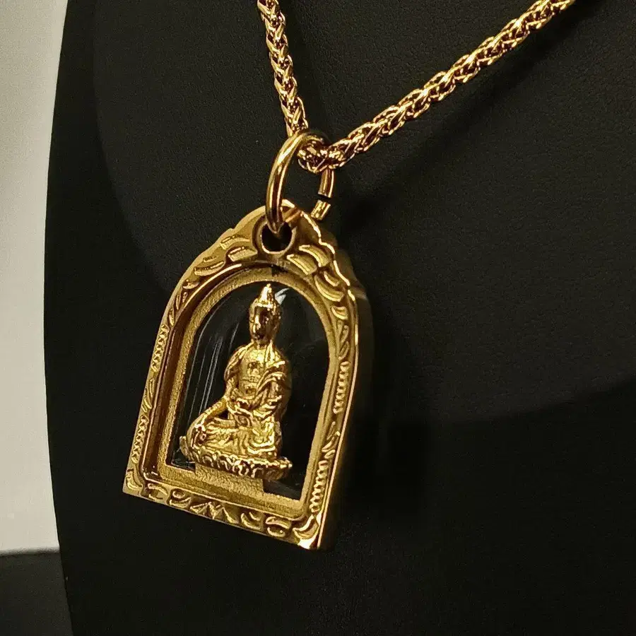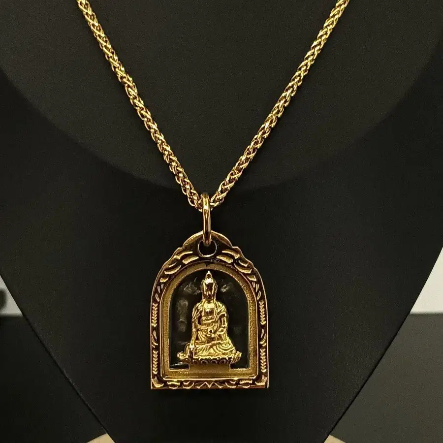 빈티지 불상 붓다 펜던트 목걸이 골드 롱 로프