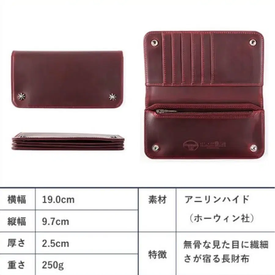 니노미야 고로 상점 호윈 크롬 엑셀 롱 지갑 아폴로 와인 레드