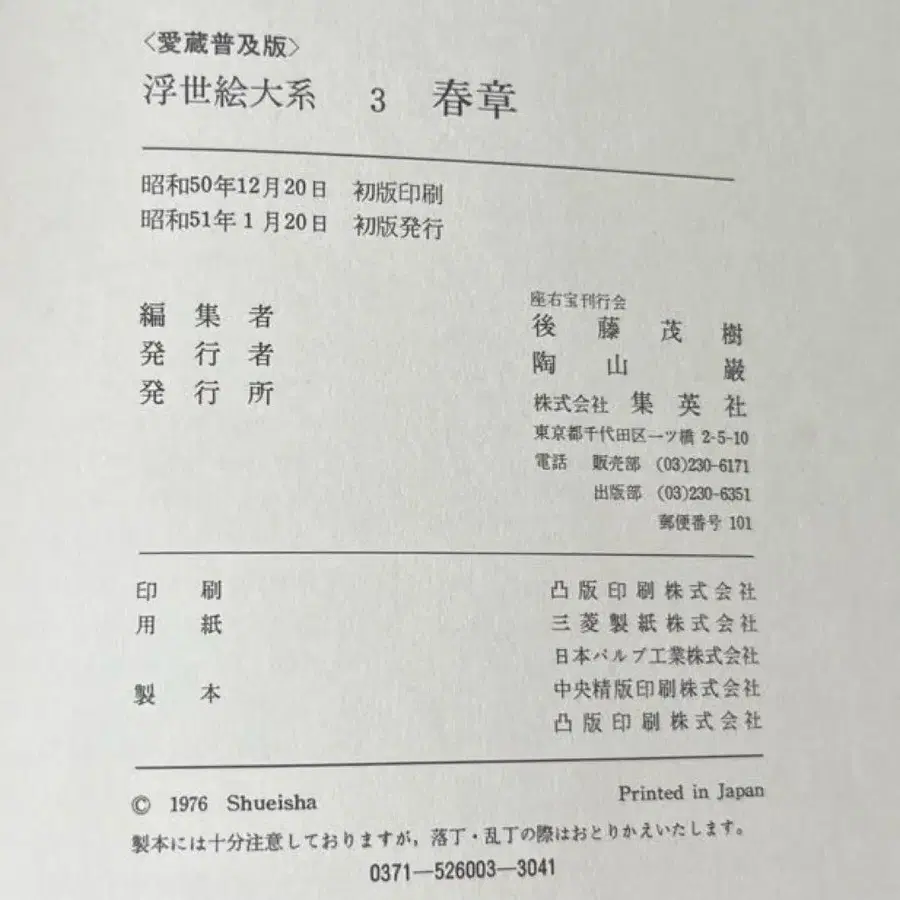 "초판본" 우키요에 대계 3 봄 장 고토 시게키 슈에이샤