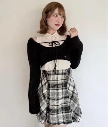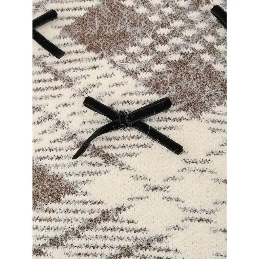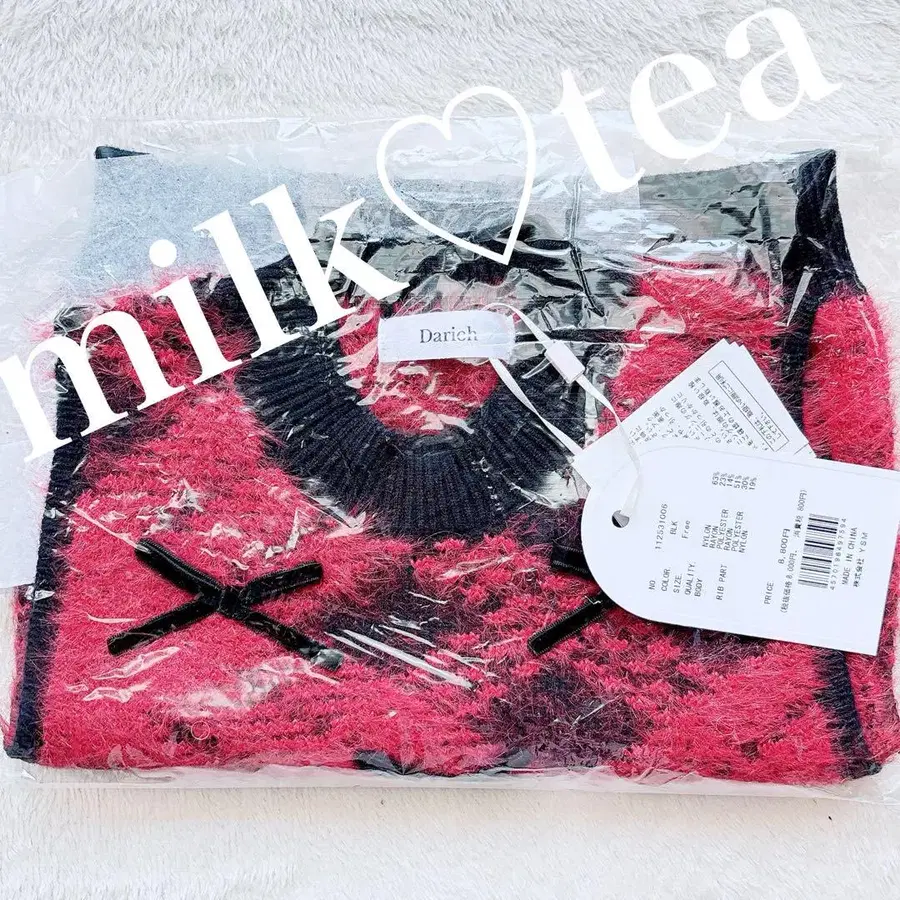 택 포함 새상품 다리치 리본 샤기 체크 니트 탑 레드