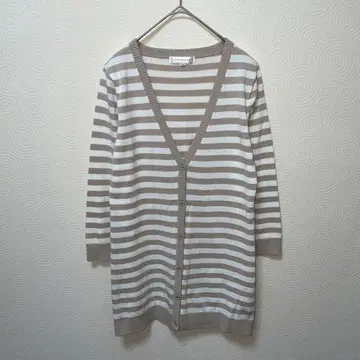 엠프리미어 보더 니트 가디건 칠부 소매 면 혼방 베이지 38 M