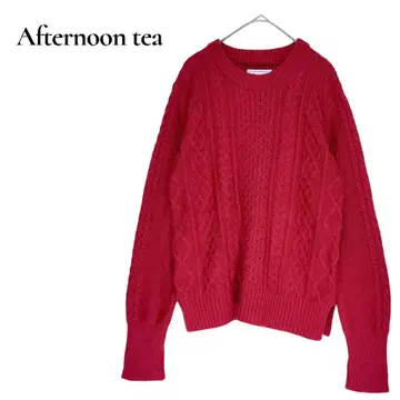 • 애프터눈 티 울 혼방 케이블 니트 스웨터 M 레드
