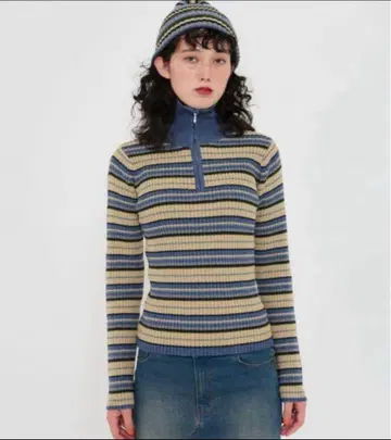 • PUBLIC TOKYO 숏 헤임 리브 니트 스웨터 니트 블루