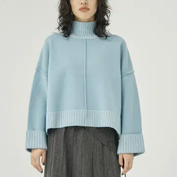 PUBLIC TOKYO 숏 헤임 리브 니트 스웨터 니트 블루