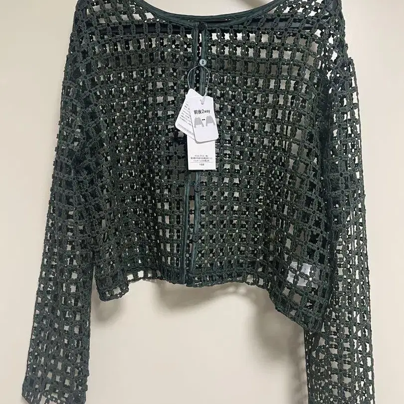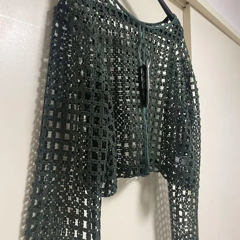 다크 그린 시스루 니트 가디건 2way