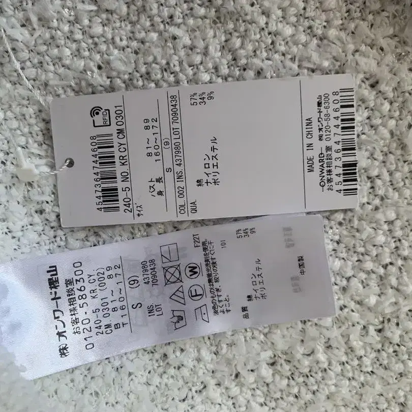 리본과 같은 모양이 특징인 슬라릿얀과 면의 슬라브얀, 가는 번호의 폴리에스테르 실, 동일 컬러의 3종 이소재를 랜덤 보더 형태로 믹스하여 편직한 ICB의 오리지널 팬시 니트 소재입니다. 다양한 실의 조합에서 태어나는 풍부한 모양과 표면감은 니트만의 특징입니다.