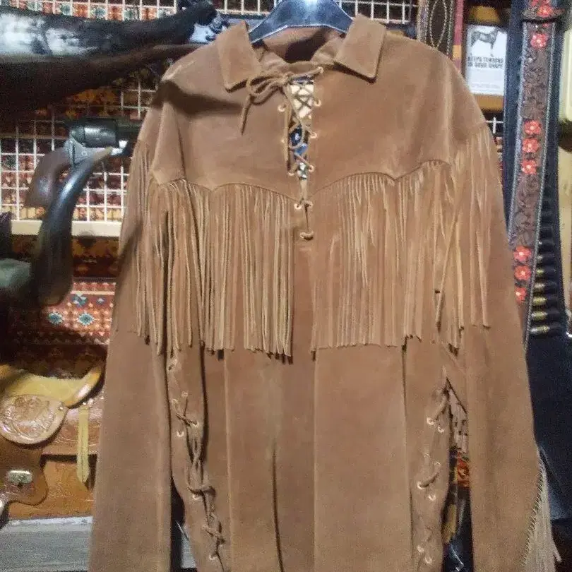 웨스턴 프린지 자켓 가죽 셔츠 피그스킨 카우보이, 아메카지