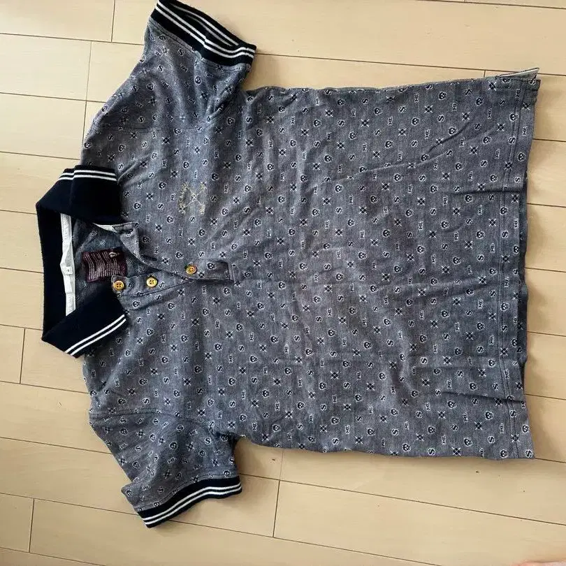 • 유니클로 빈티지 네이비 티셔츠 셔츠 탁한 골드 금속 버튼