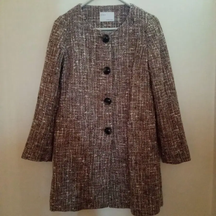 이에나 노카라 롱 자켓 베이지 트위드풍