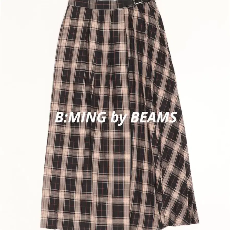 비밍 바이 빔즈 플리츠 믹스 스커트 블랙 체크 무늬 롱 기장
