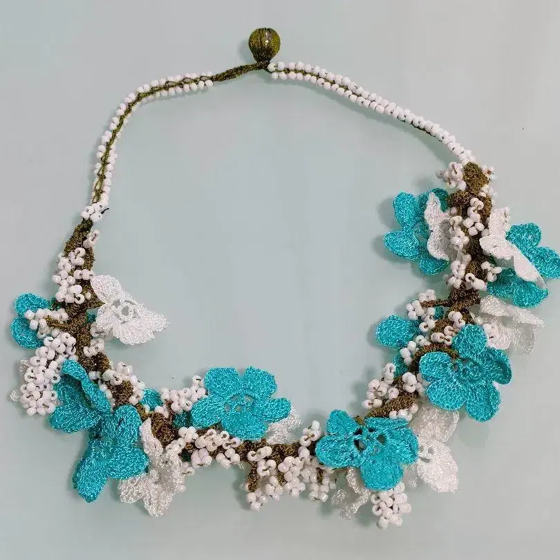 o25 터키 오야 자수 목걸이 화이트 스카이블루 플라워 자수 밸리댄스