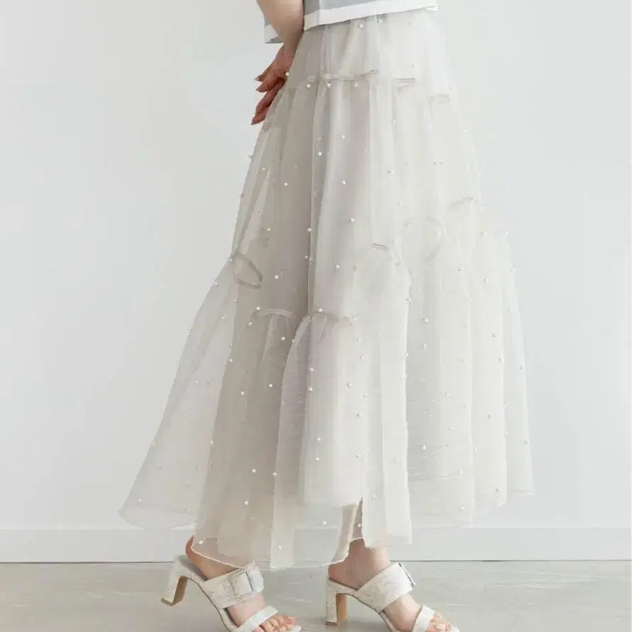 표정 풍부한 오간자 소재에 펄을 뿌린 화려한 플레어 스커트.