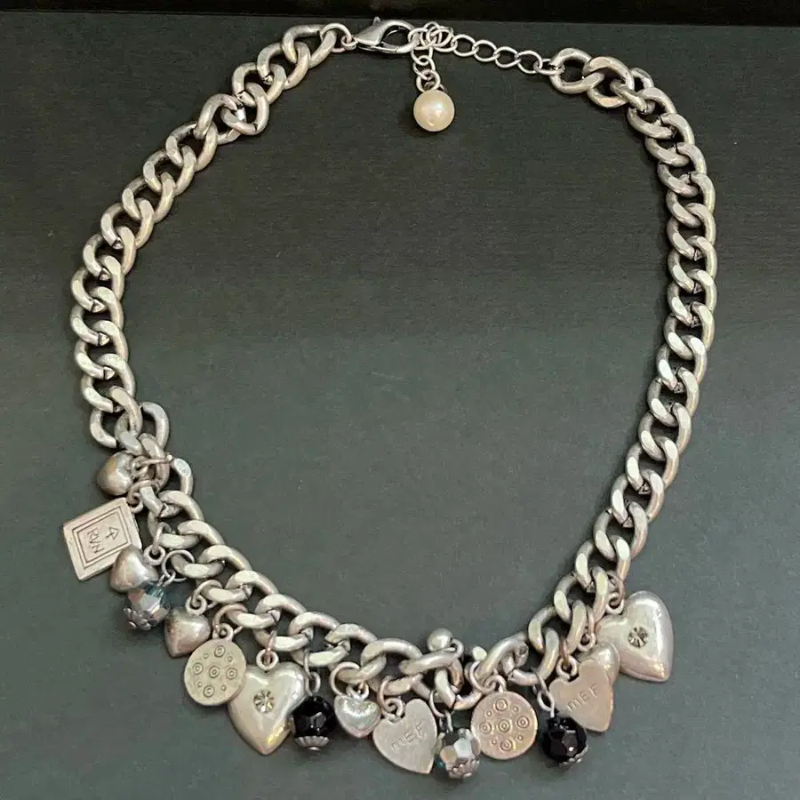 하트 참 포함 실버 체인 목걸이 앤티크