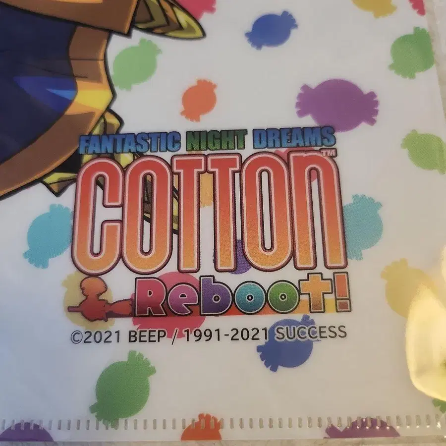 컬러풀한 도트 무늬의 코튼 클리어 파일, 손을 뻗은 디자인이 특징. - 캐릭터명: 코튼 - 타이틀: COTTON Reboot! - 디자인: 컬러풀한 도트 무늬 - 캐릭터의 자세: 손을 뻗고 있는 포즈 - 제조년: 2021년 방문해 주셔서 감사합니다.