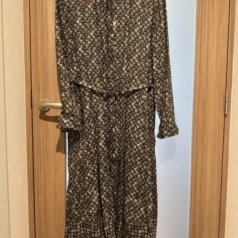 R&D.M.Co-의 PANSY 프린트 원피스입니다. 색상은 브라운 x 세이지 그린, 핑크 등의 팬지 패턴입니다. 촘촘하게 짜인 린넨 평직 원단을 사용했습니다. 비침은 없으며, 린넨 특유의 실매듭 네프가 보이는 약간 얇은 소재입니다. 프론트는 전체 히든 버튼 여밈, 소매 커프스는 1버튼 여밈입니다. 허리 및 사이드에 절개를 배치하고, 소매 입구에는 턱, 백 허리 센터에는 인버티드 턱이 들어가 있으며, 밑단에는 넓은 이중 마감 절개가 적용되었습니다. 양 사이드에 심 포켓이 있습니다.