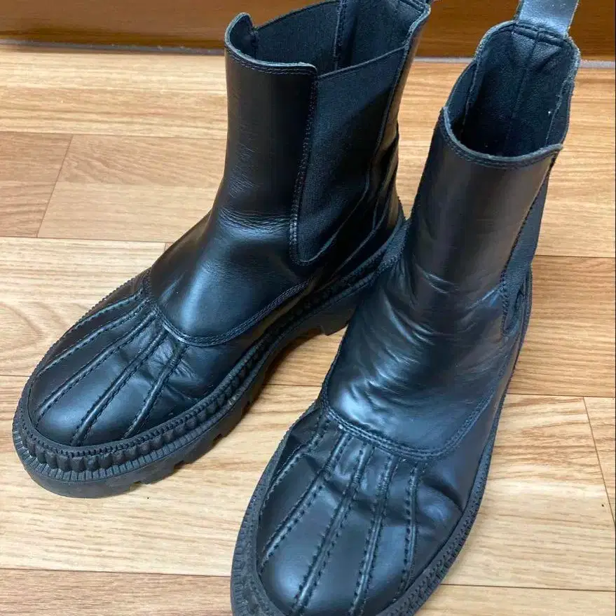 REMME 가죽 사이드 고어 부츠 첼시 통굽 탱크 밑창 37