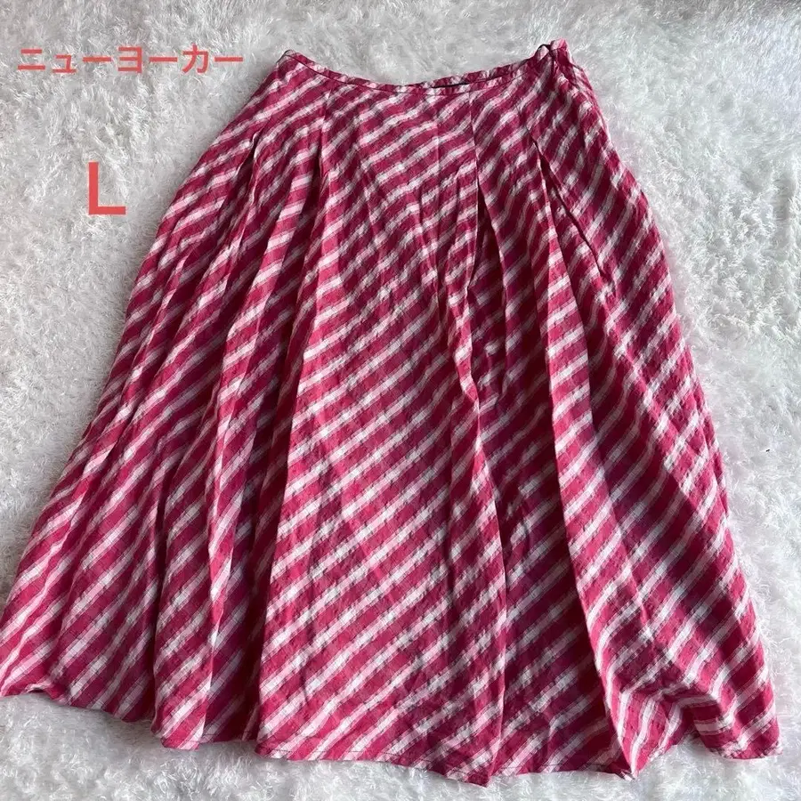 NEWYORKER 뉴요커 체크 무늬 플레어 스커트 레드 L