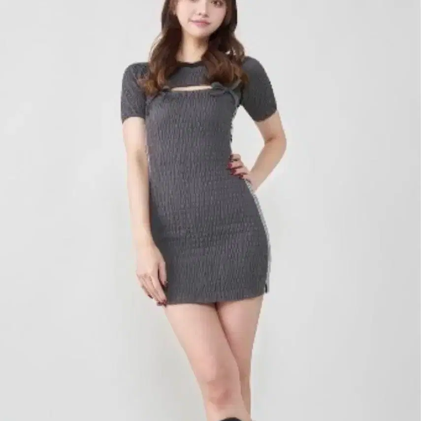 • 다리치 오픈 케이블 니트 미니 원피스