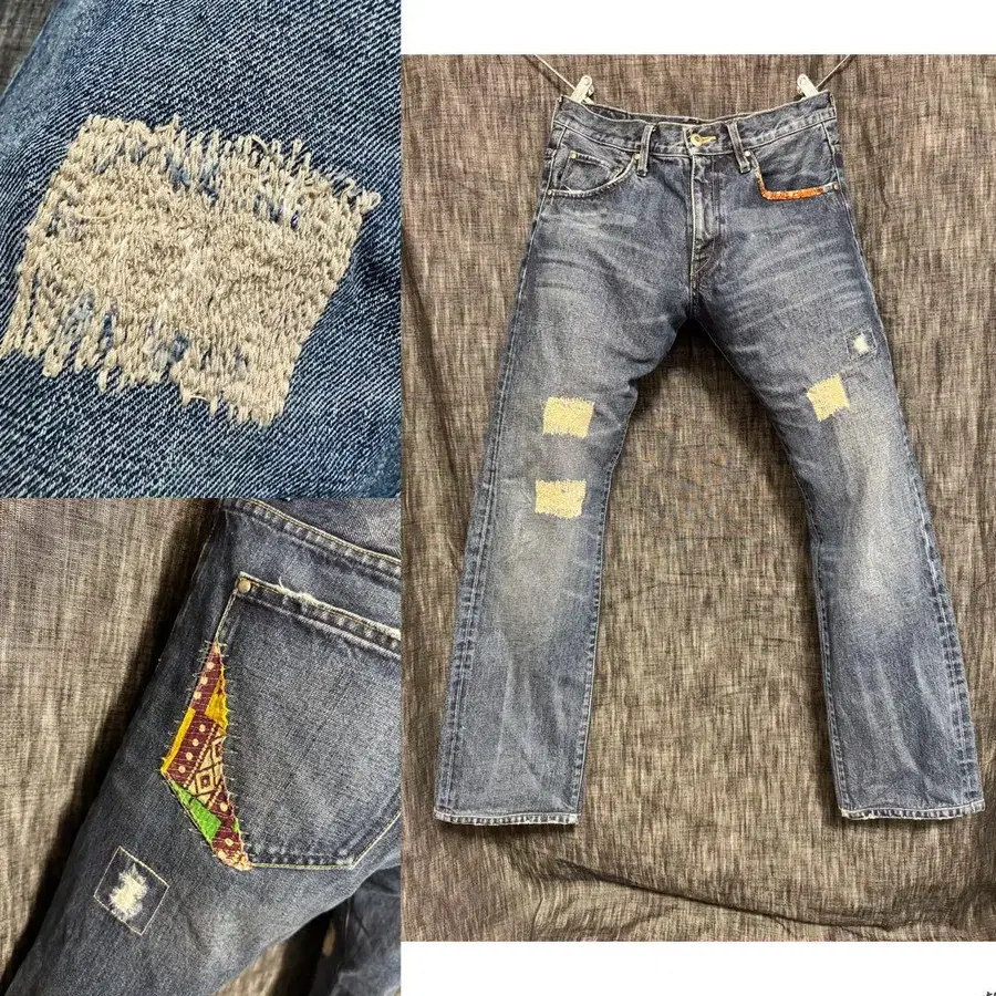 • 스트레이트 데님 청바지 데미지 가공 패치워크 빈티지 25