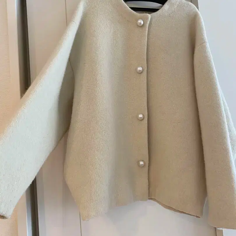 리랜드트루 노카라 니트 자켓 펄 버튼 크림색 화이트