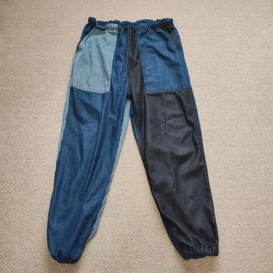 Freeks Store 데님 스트라이프 패치워크 팬츠