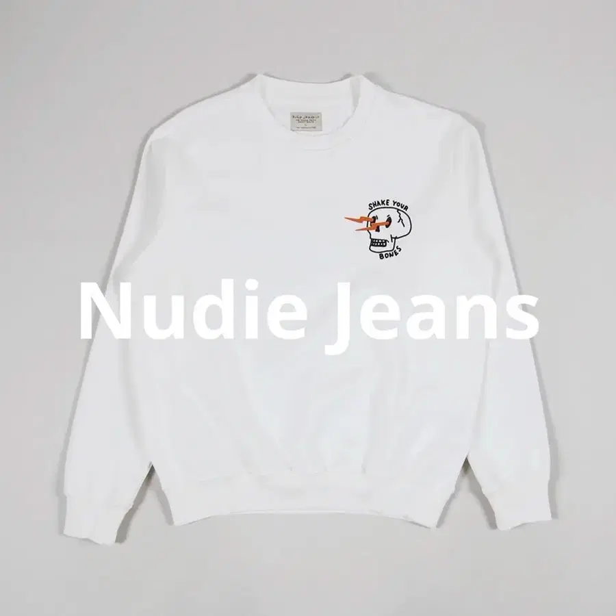 [ Nudie Jeans ] 스컬 디자인 화이트 맨투맨 트레이닝복