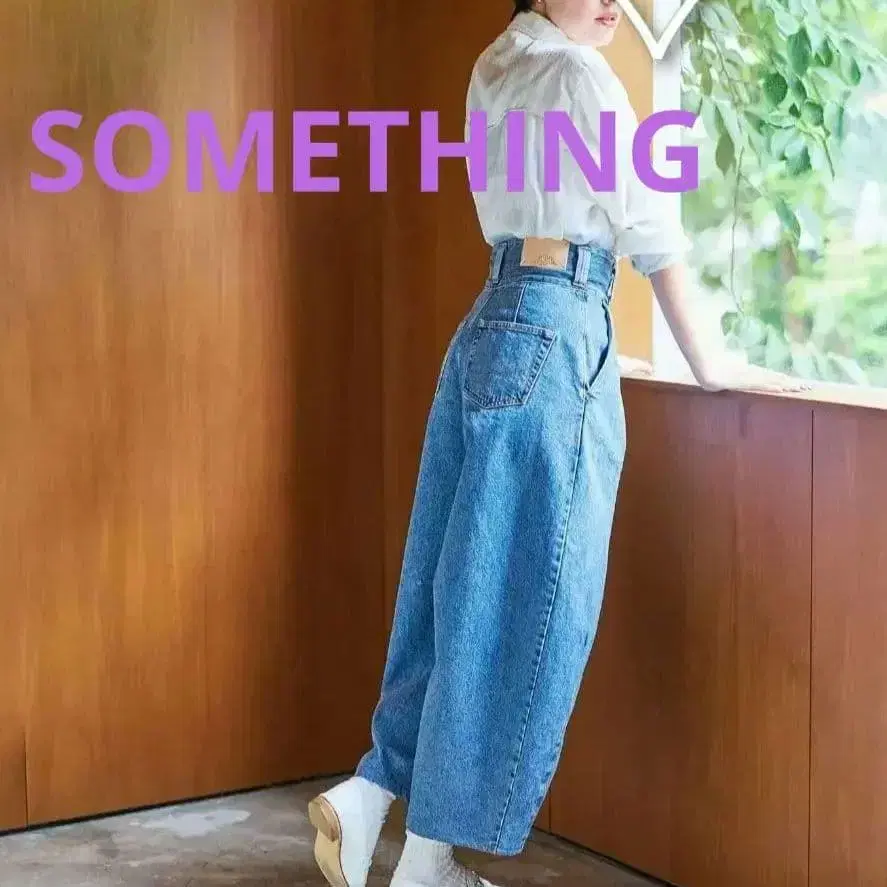 썸씽 라이트 블루 와이드 레그 커브 데님 팬츠 S 투 턱 입