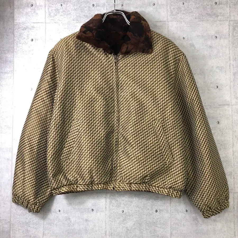 쇼와 레트로 보태니컬 무늬 퍼 안감 퍼 옷깃 지그재그 기하학 패턴 집업