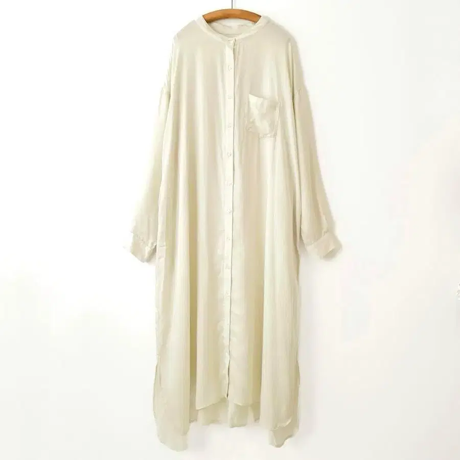 Bonum 테론 새틴 셔츠 원피스 오버 사이즈 루즈핏 베이지