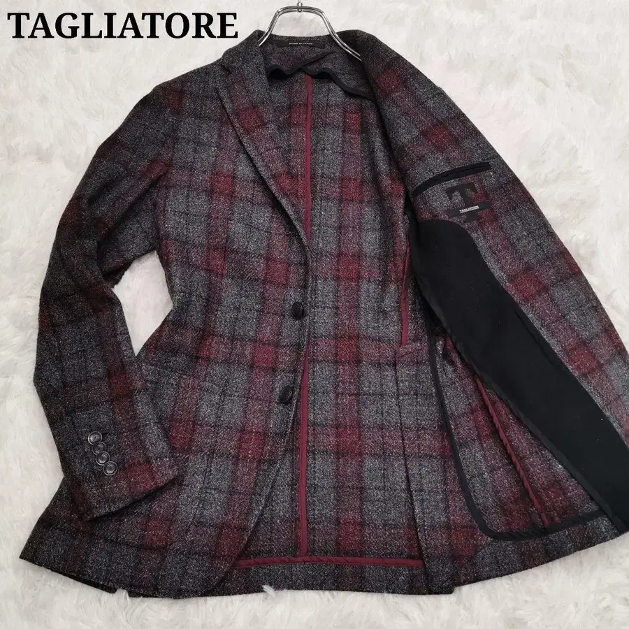 딸리아또레 트위드 실크 혼방 체크 무늬 테일러드 자켓 44 S