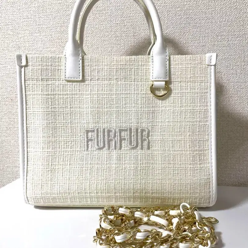 furfur 트위드 로고 토트백 IVR 정가 9900엔 구매 후 한 번 사용했지만, 사이즈감이 맞지 않아 판매합니다. 손잡이나 가방 자체에도 흠집 없이 매우 깨끗한 상태입니다! 체인은 한 번도 사용하지 않았습니다. 에어캡으로 감싼 후 방수 대책하여 포장합니다. 숄더백 토트 화이트 베이지 아이보리 트위드 체인 여성용