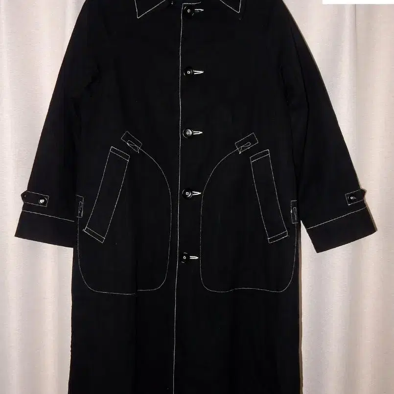 검은색 바탕에 흰색 스티치가 예쁜 코튼 100% 코트입니다.