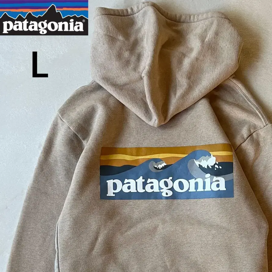 파타고니아 L 후드티 베이지 뒷면 빅 로고