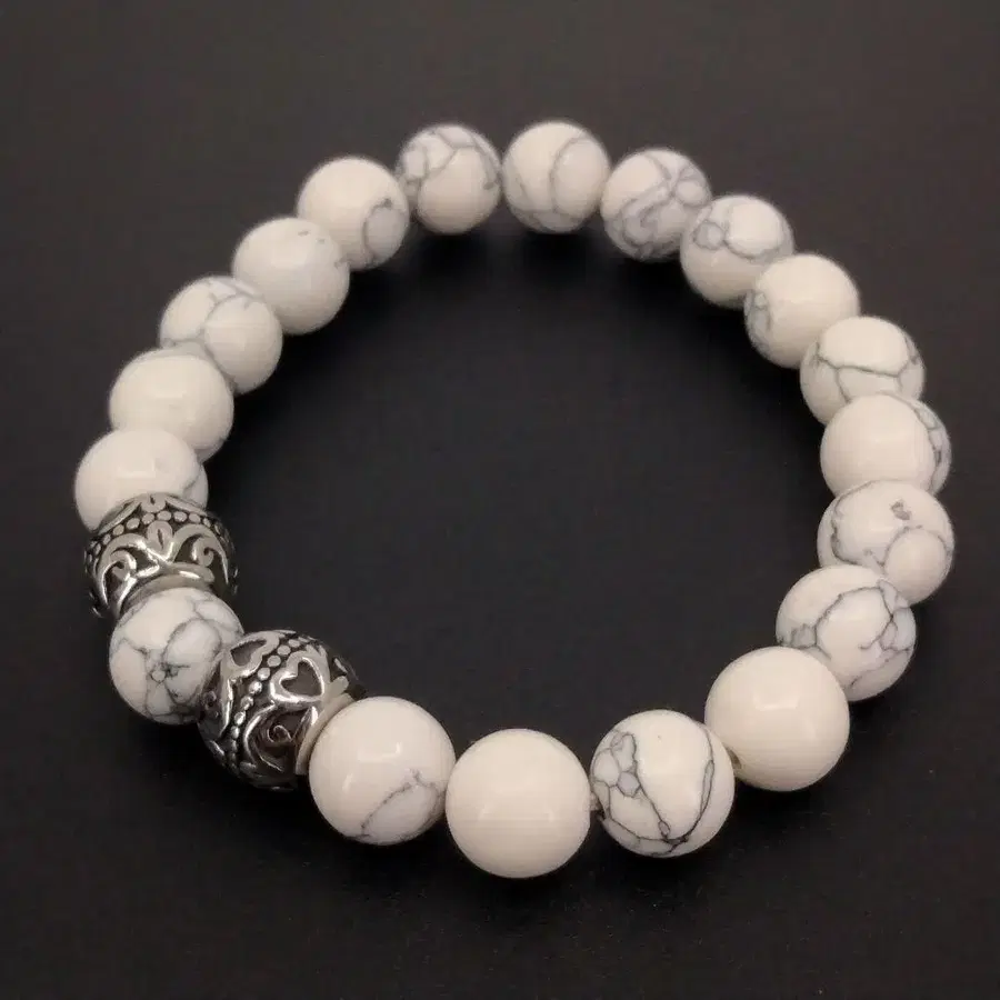 빈티지 스컬 화이트 염주 실버 스톤 팔찌