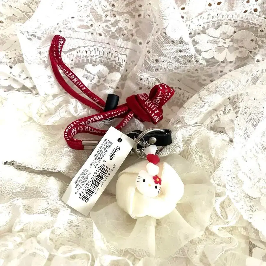 레어 키티 넥스트랩 화이트 로고 빨간색 산리오 하트 비즈 포함