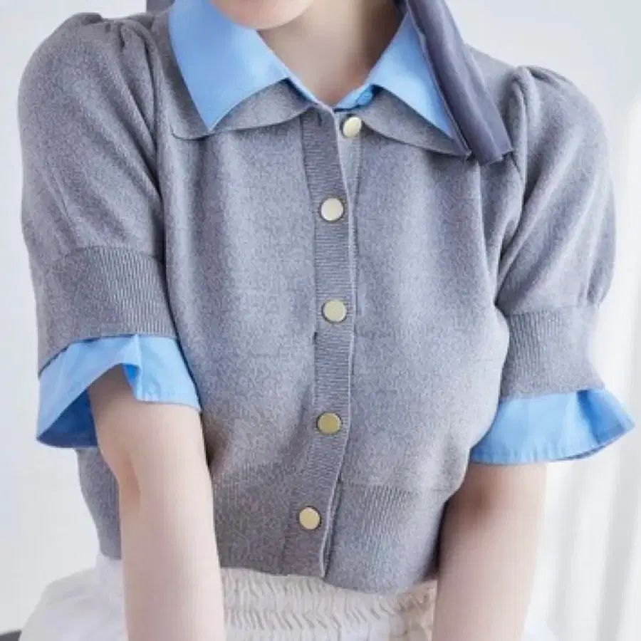 NICE CLAUP 레이어드 카라 부착 폴로 니트 그레이