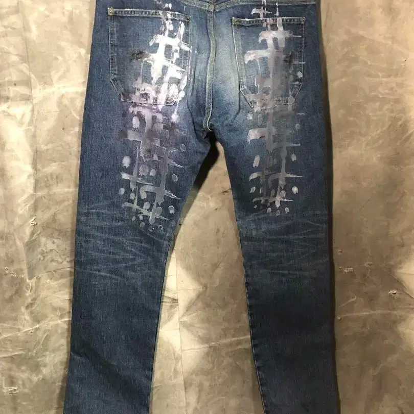 cvtvlist 데님 팬츠 실버 버튼 페인트 가공