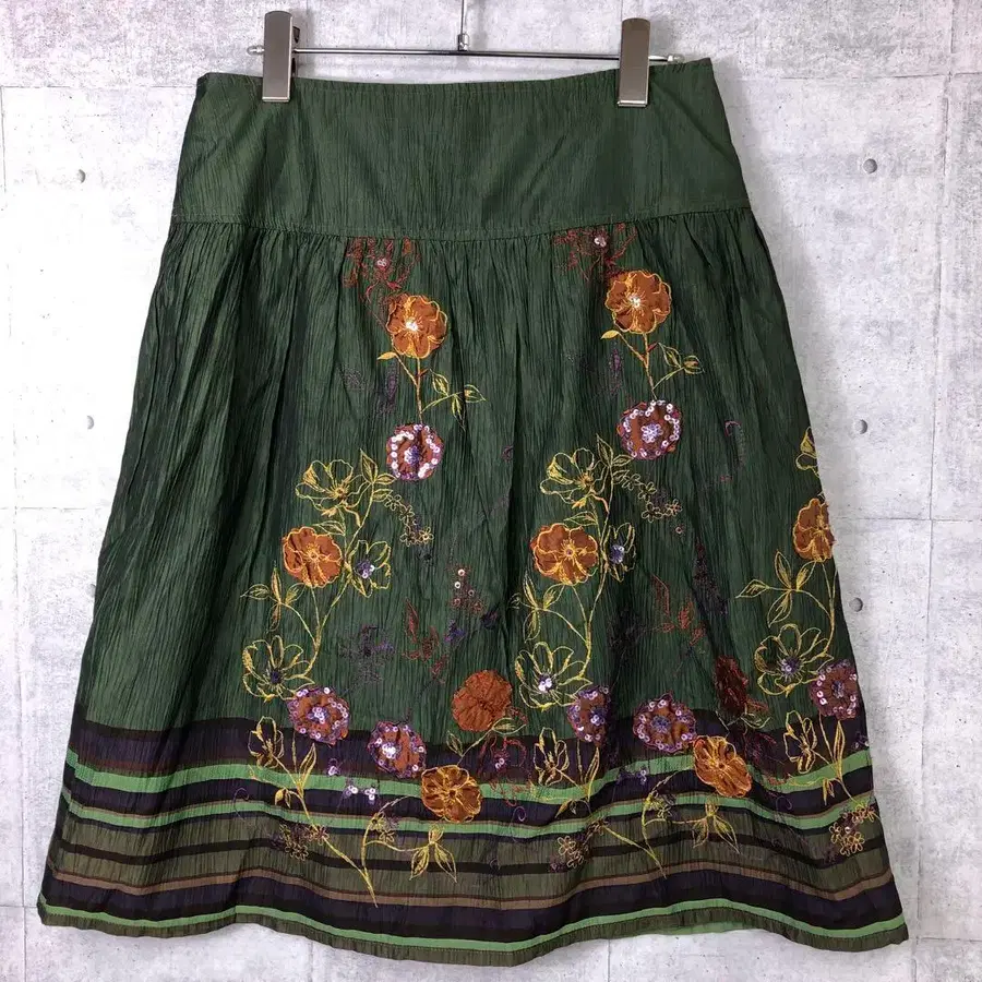 보헤미안 시크 오리엔탈 구제 의류 이국적인 플라워 자수 플레어 스커트
